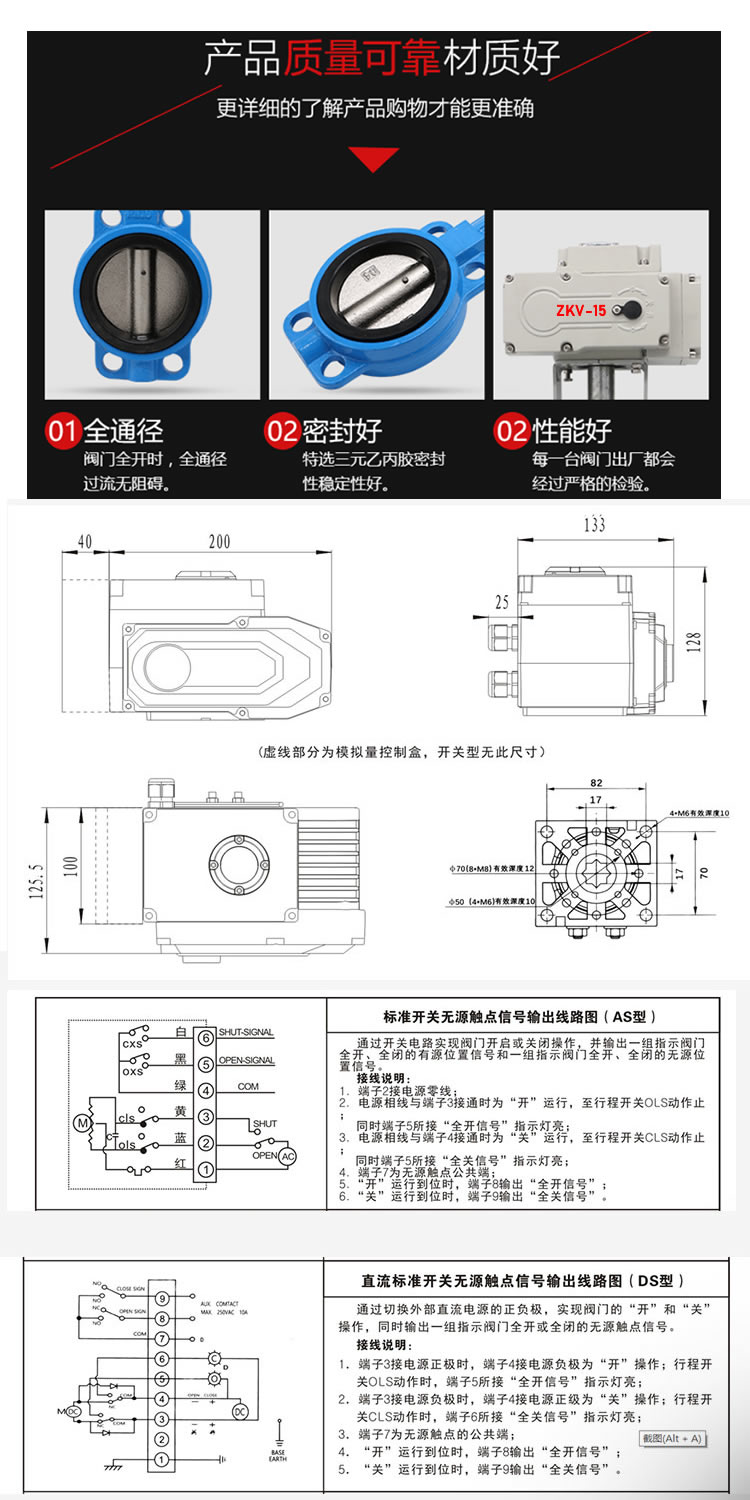 上海自科對夾式電動蝶閥屬于電動閥門和電動調(diào)節(jié)閥中的一個品種。對夾式電動蝶閥連接方式主要有:法蘭式和對夾式;對夾式電動蝶閥密封形式主要有:橡膠密封和金屬密封。電動蝶閥通過電源信號來控制蝶閥的開關(guān)。該產(chǎn)品可用做管道系統(tǒng)的切斷閥,控制閥和止回閥。附帶手動控制裝置,一旦出現(xiàn)電源故障,可以臨時用手動操作,不至于影響使用。